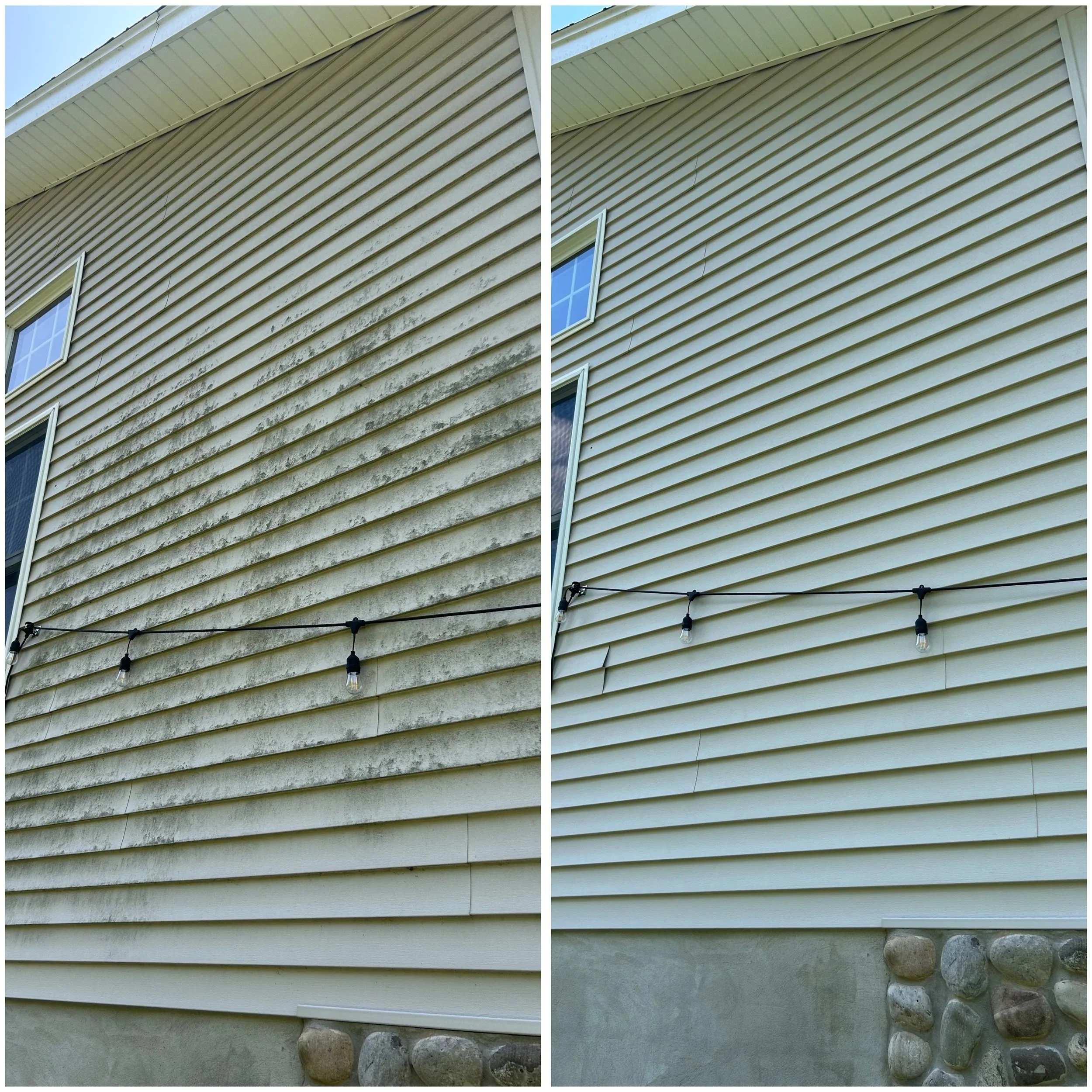 At Motown Power Washers we use a low-pressure soft wash system that safely removes mildew, algae, dirt, and stains without damaging surfaces. First, we inspect the area and protect landscaping and sensitive fixtures. We apply a biodegradable, cleaning solution tailored to the surface (roof, siding, or deck) using low-pressure spray equipment and controlled dwell time to break down organic growth. After the solution has done its work, we thoroughly rinse with low-pressure water to remove residue and restore the surface. Finally, we perform a quality check and recommend any follow-up maintenance to keep results lasting.
